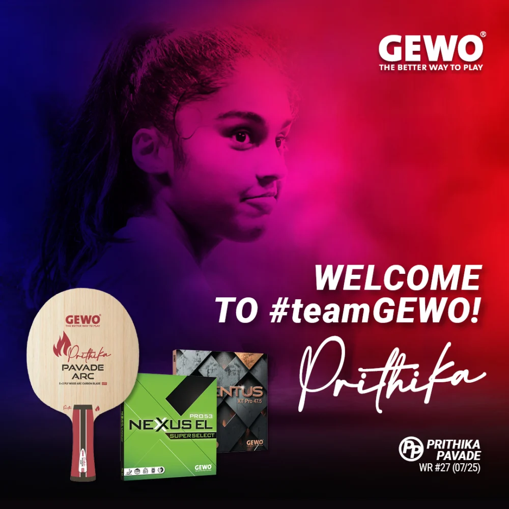 Prithika Pavade Signs Long-Term Sponsorship Deal with GEWO, Introducing the Exclusive Table Tennis Blade GEWO Prithika Pavade ARC OFF